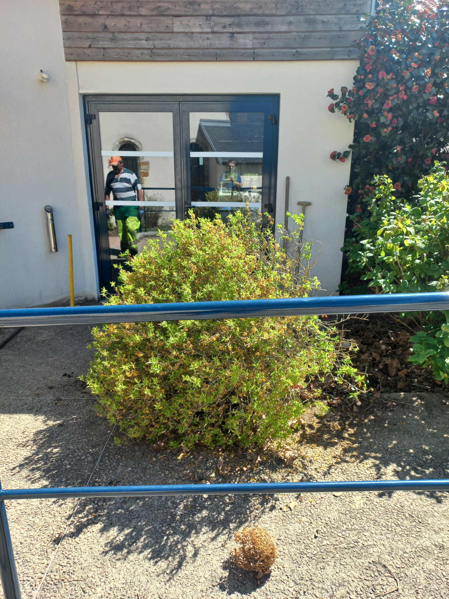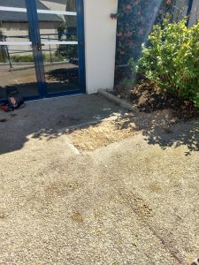 La semaine a débuté par le retrait d’un forsythia, situé devant la salle des fêtes. Celui-ci pouvait gêner la circulation en cas de sortie importante du public. Il a été soigneusement mis en pot afin d’être replanté ultérieurement dans un espace plus adapté.