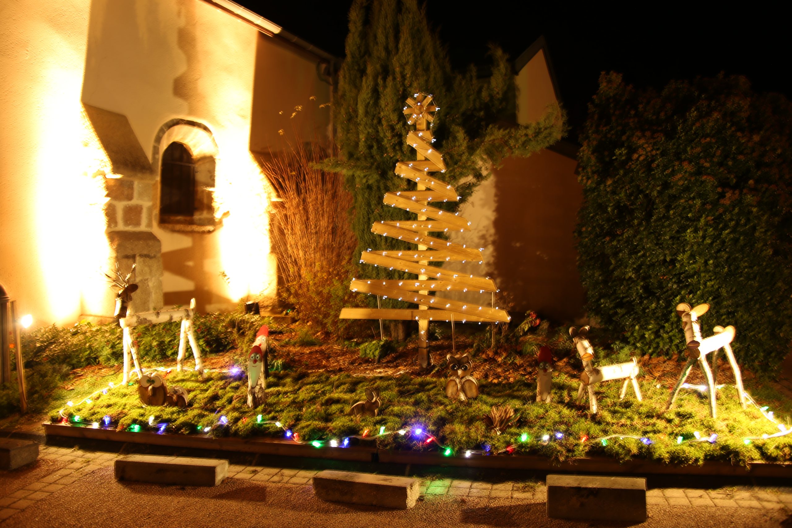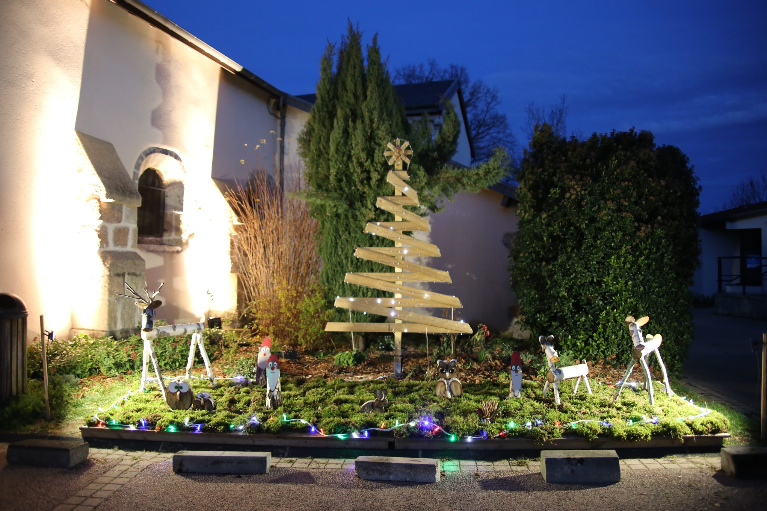 C’est le 5 décembre dernier que le bourg de Moureuille s’est illuminé aux couleurs de Noël, dans un surprenant jeu de sons et lumières. Bien sûr en amont, l’équipe en charge de la mise en place des décorations a œuvré pour orner arbres, massifs et candélabres de guirlandes et disposer les créations artisanales réalisées par un habitant de la commune, doué et inspiré. Vin chaud, pain d’épices et autres douceurs de circonstances sont venues agrémenter cette soirée conviviale à laquelle tous les Moureuillois étaient conviés. Une belle façon de se mettre en train pour les fêtes de fin d’année !