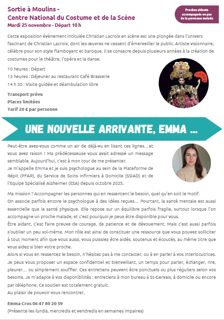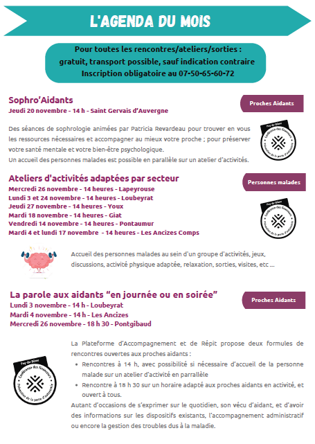 Voici en pièce jointe le programme de janvier à la Maison des Aidants en Combrailles.