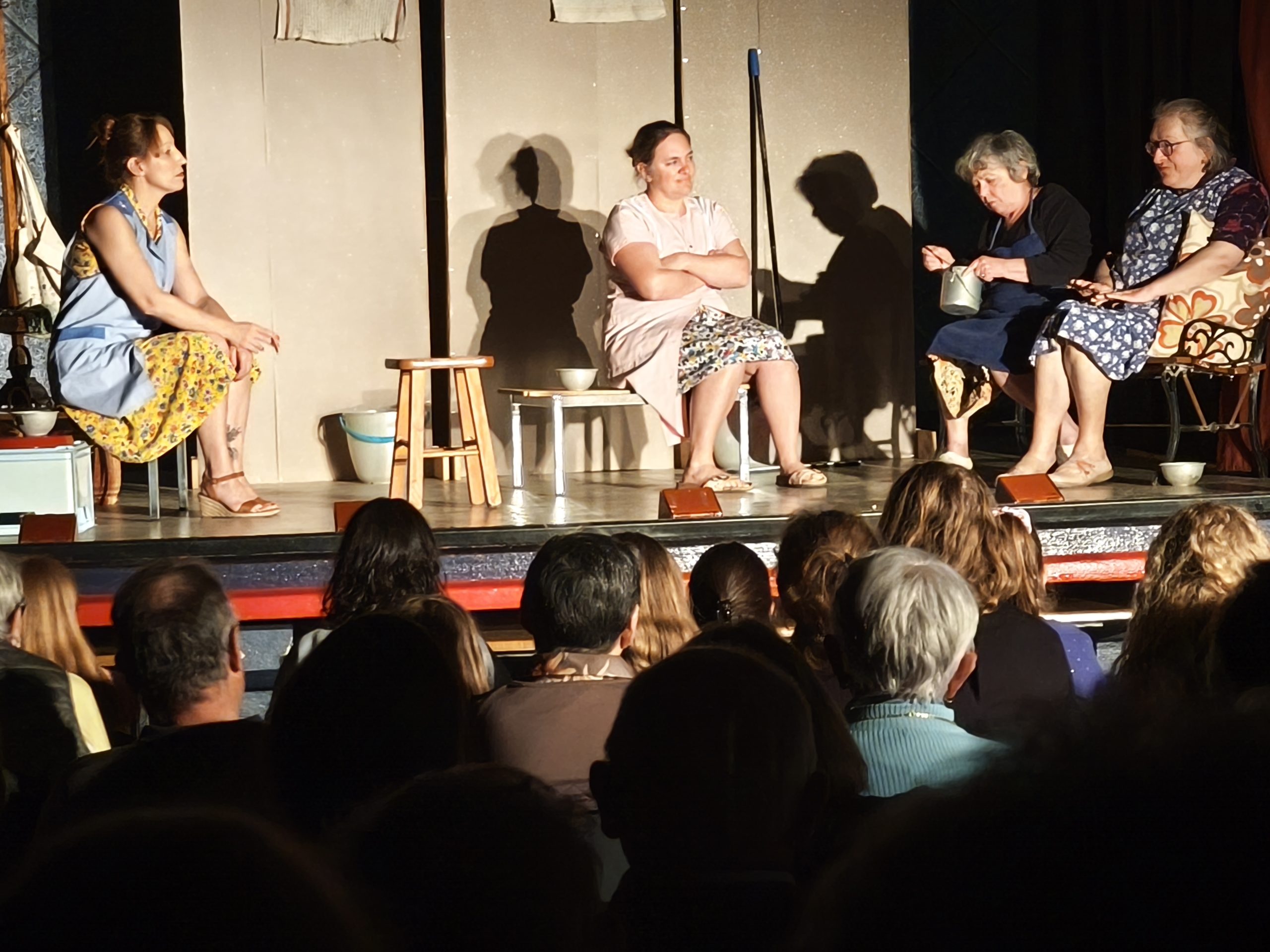 Quatre femmes de ménage à la fin d’une journée de travail. On papote, quoi de plus naturel ?
