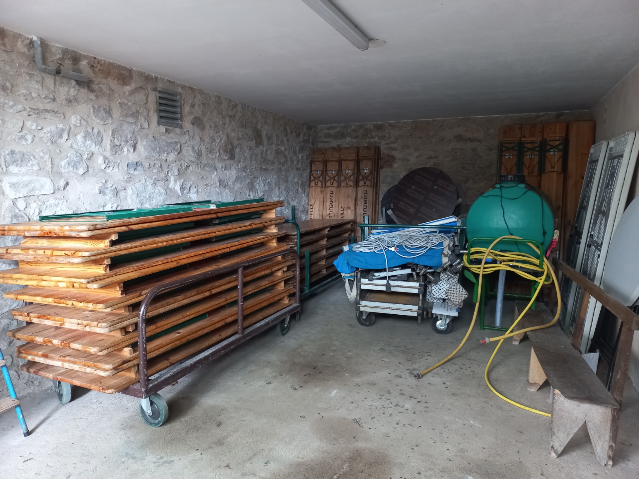 Parallèlement, la grange communale devient le lieu central de stockage pour tout le matériel destiné aux manifestations : tables et bancs du comité des fêtes, équipements communaux (illuminations de Noël, matériel événementiel…) ainsi que celui des autres associations. Cette organisation permet d’éviter la dispersion des équipements et d’en simplifier l’utilisation.