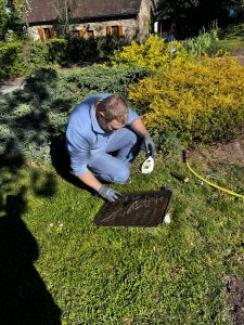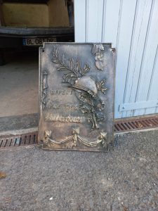 Les plaques commémoratives du monument aux morts ont été déposées puis nettoyées avec des produits adaptés afin d’éliminer les impuretés accumulées au fil du temps. Cette première étape permet déjà d’améliorer leur lisibilité, en attendant une restauration complète par sablage qui leur redonnera tout leur éclat d’origine.