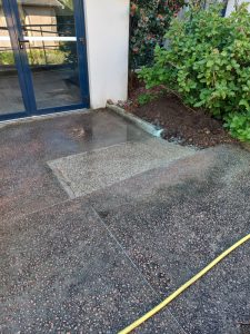 Suite au retrait d’un forsythia, un affaissement présentait un risque pour les usagers. Celui-ci a été comblé en béton désactivé, offert par la société PERRIN COLAS, apportant à la fois sécurité et harmonie visuelle.