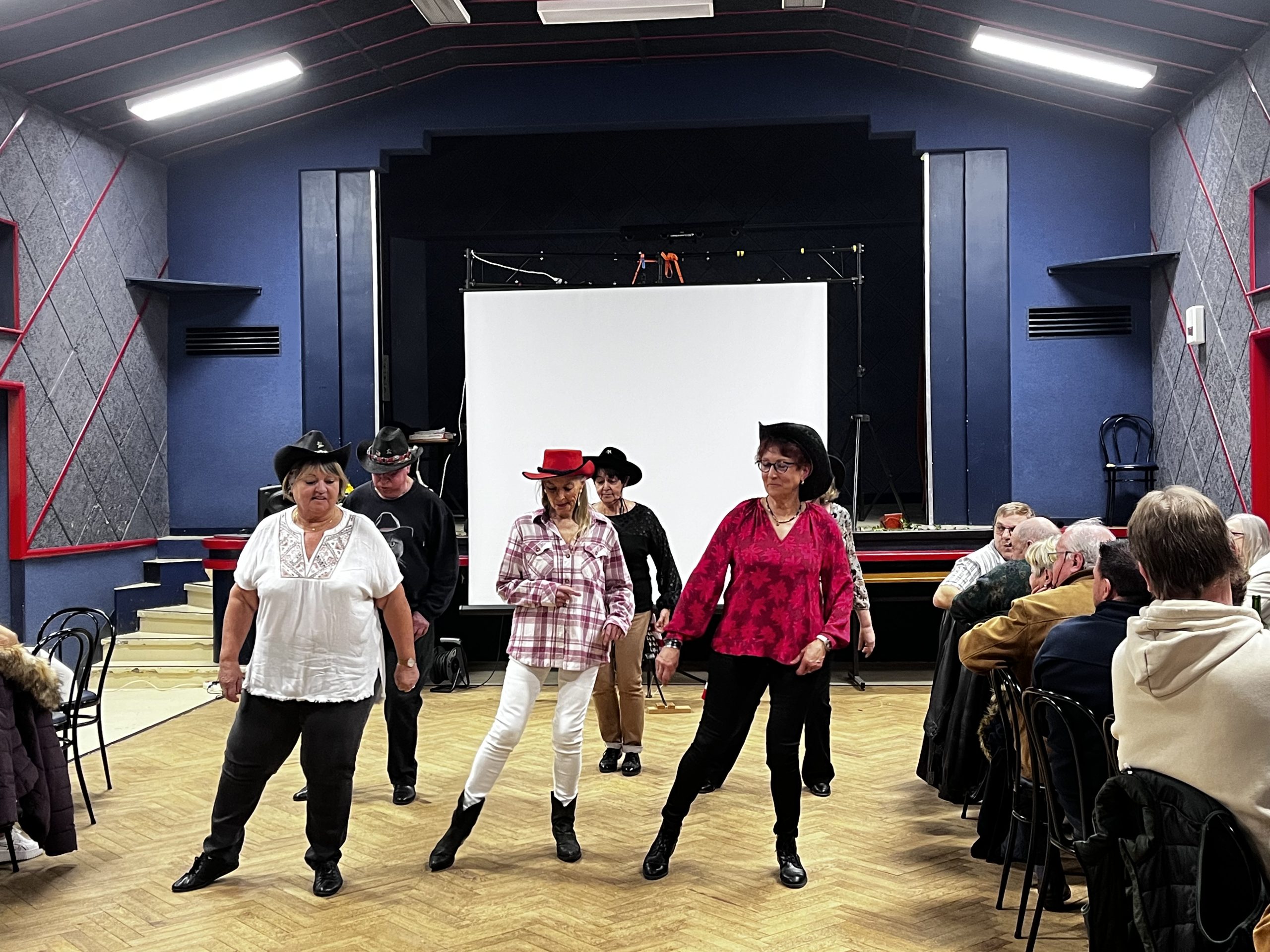 La soirée s’est ensuite animée grâce à Rolland, accompagné de quelques danseuses du groupe de Country, qui ont offert aux invités une démonstration de leur passion. Dans une ambiance enthousiaste et détendue, ils ont même invité les participants à s’initier à quelques pas, pour le plus grand plaisir des spectateurs devenus danseurs le temps de quelques morceaux.Le repas s’est ainsi conclu sur la piste de danse, dans la joie et la convivialité.
